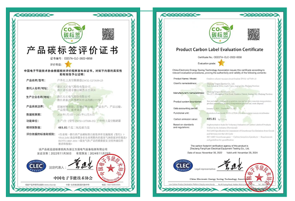 此次碳标签评价表明,尊龙凯时电气生产的户外柱上真空断路产品,在碳排放大数据方面按国际通行惯例推进,并具备一定的优势,对促进产品全供应链的温室气体减排,达成“双碳”目标具有积极作用。此外,尊龙凯时还获中国电子节能技术协会颁发的低碳产品供应商证书。
